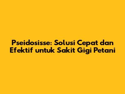 Hai, teman-teman petani! Pernahkah kalian merasakan sakit gigi yang mengganggu aktivitas sehari-hari di kebun atau sawah? Pasti sangat tidak nyaman, ya! Nah, kali ini kita akan membahas tentang pseidosisse, sebuah solusi ampuh untuk mengatasi sakit gigi yang sering dialami oleh para petani. Pseidosisse bukanlah obat sembarangan, melainkan racikan khusus yang telah terbukti efektif meredakan nyeri dan memberikan kenyamanan bagi penggunanya. Artikel ini akan membahas secara mendalam tentang pseidosisse, mulai dari apa itu pseidosisse, bagaimana cara kerjanya, hingga manfaat dan cara penggunaannya yang tepat. Tujuannya adalah agar kalian, para petani hebat, bisa mendapatkan informasi yang lengkap dan akurat mengenai solusi cepat untuk sakit gigi ini. Mari kita bedah tuntas tentang pseidosisse obat sakit gigi pak tani!