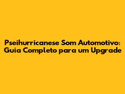 Pseihurricanese Som Automotivo: Guia Completo Para Um Upgrade