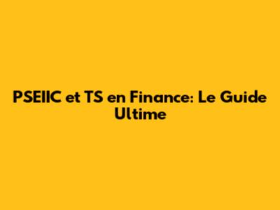 PSEIIC Et TS En Finance: Le Guide Ultime