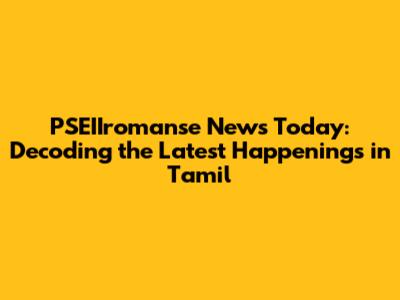 PSEIIromanse News: Latest Updates & Tamil Coverage