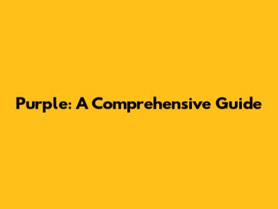 Purple: A Comprehensive Guide