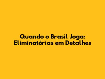 Quando O Brasil Joga: Eliminatórias Em Detalhes
