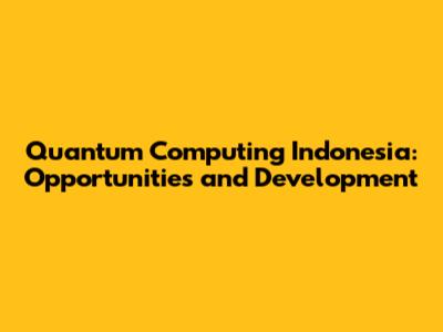 Quantum Computing Indonesia: Opportunities And Development