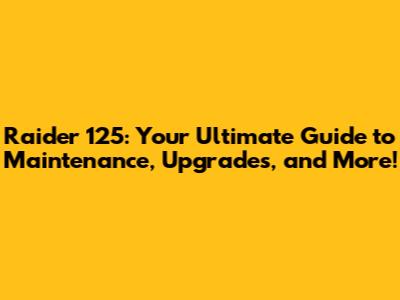 Raider 125: Your Ultimate Guide To Maintenance, Upgrades, And More!