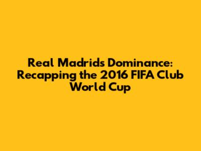Real Madrid's 2016 FIFA Club World Cup Triumph