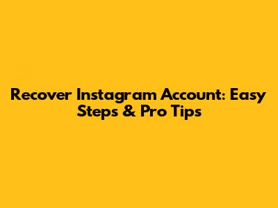 Recover Instagram Account: Easy Steps & Pro Tips