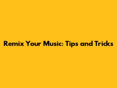 Remix Your Music: Tips And Tricks