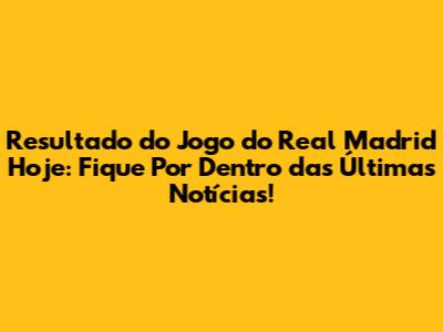 A Emoção de Cada Partida: O Que Esperar do Resultado do Jogo do Real Madrid Hoje?