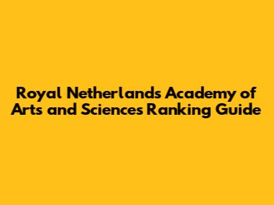 Royal Netherlands Academy Of Arts And Sciences Ranking Guide