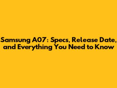 Samsung A07: Specs, Release Date, And Everything You Need To Know