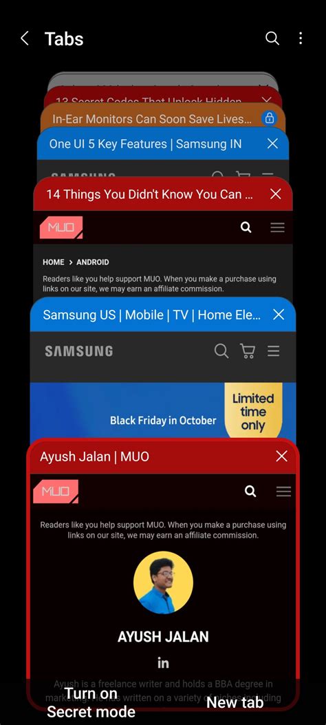 Secret mode is the Samsung Internet ’s version of Incognito mode, offering a private browsing experience. When you’re in secret mode, your browsing history, cookies, and other data are not saved, leaving no trace of your activity on your device. To use secret mode: Open the Samsung Internet app. Tap the Tabs button. Tap the Turn on Secret Mode. Browse the internet privately. It is ideal for browsing sensitive information or keeping your browsing history private. It’s super useful for situations where you don’t want to leave a trace of your activity on your device. Just remember that it doesn’t protect you from being tracked by your internet service provider or the websites you visit.