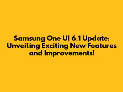 Samsung One UI 6.1 Update: New Features & Upgrades!