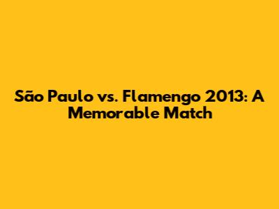 São Paulo Vs. Flamengo 2013: A Memorable Match