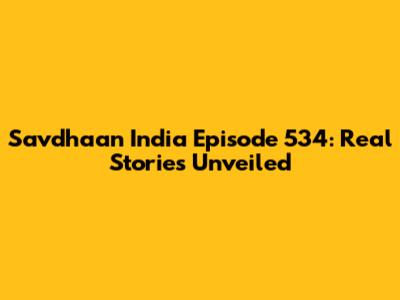 Savdhaan India Episode 534: Real Stories Unveiled