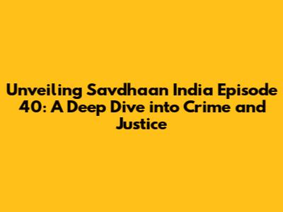 Unveiling Savdhaan India Episode 40: A Deep Dive into Crime and Justice