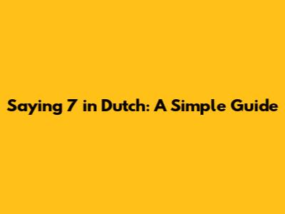 Saying 7 In Dutch: A Simple Guide