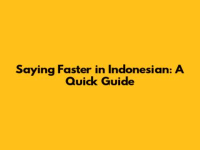 Saying Faster In Indonesian: A Quick Guide