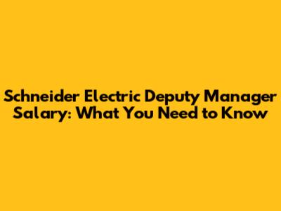 Schneider Electric Deputy Manager Salary: What You Need To Know