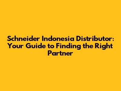 Hey guys! Looking for a Schneider Electric distributor in Indonesia? You've landed in the right spot. In this article, we'll walk you through everything you need to know to find the perfect partner for your electrical needs. Whether you're working on a large-scale industrial project or need reliable components for your business, understanding the landscape of Schneider distributors in Indonesia is key.