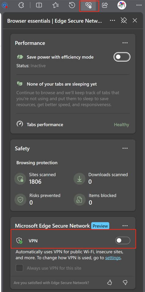5. Toggle it On: You’ll see a toggle switch next to “Microsoft Edge Secure Network.” Simply click this toggle to turn the feature on. That’s it! You’ve just activated your Edge VPN .
