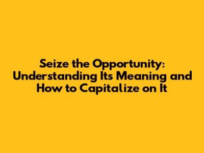 Seize The Opportunity: Meaning And How To Do It