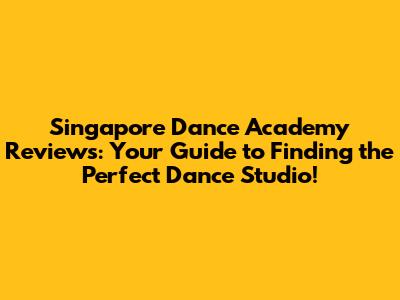 Singapore Dance Academy Reviews: Find Your Perfect Dance Studio!