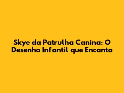 Se você está procurando um desenho infantil que combine diversão, aprendizado e valores positivos, Skye e a Patrulha Canina são a escolha perfeita. Prepare-se para embarcar em aventuras emocionantes, aprender lições valiosas e se encantar com a adorável filhote aviadora. A Patrulha Canina está sempre pronta para a ação, e Skye é uma das estrelas que fazem a diferença! Não perca a oportunidade de acompanhar as aventuras de Skye e seus amigos, e descubra como eles podem transformar a vida das crianças.