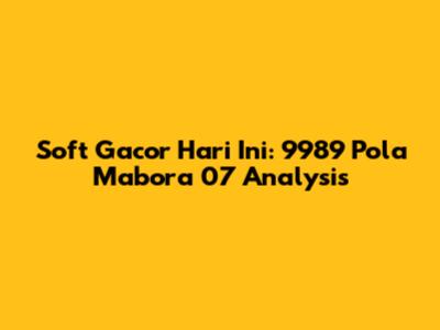 Soft Gacor Today: 9989 Mabora 07 Pattern Analysis
