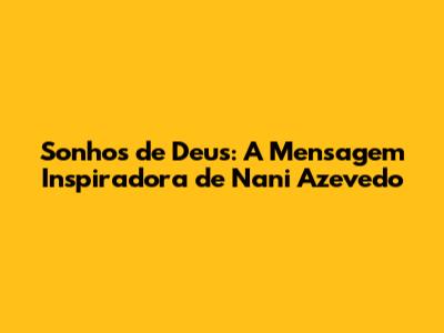 Sonhos De Deus: A Mensagem De Nani Azevedo