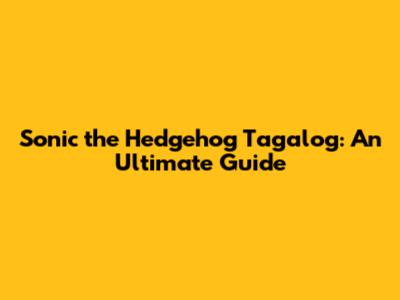 Sonic The Hedgehog Tagalog: An Ultimate Guide