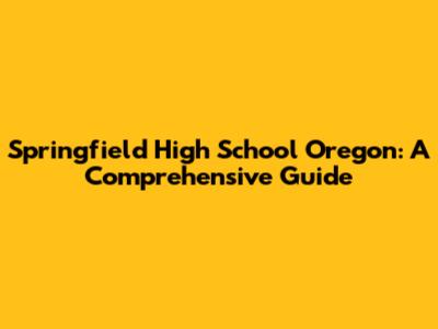 Springfield High School Oregon: A Guide