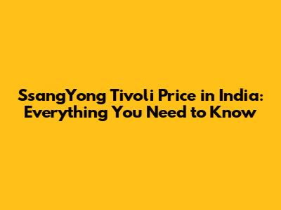 SsangYong Tivoli Price In India: A Comprehensive Guide