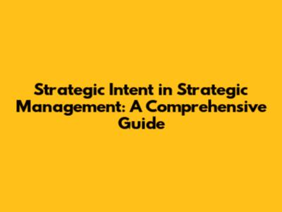 Strategic Intent In Strategic Management: A Comprehensive Guide