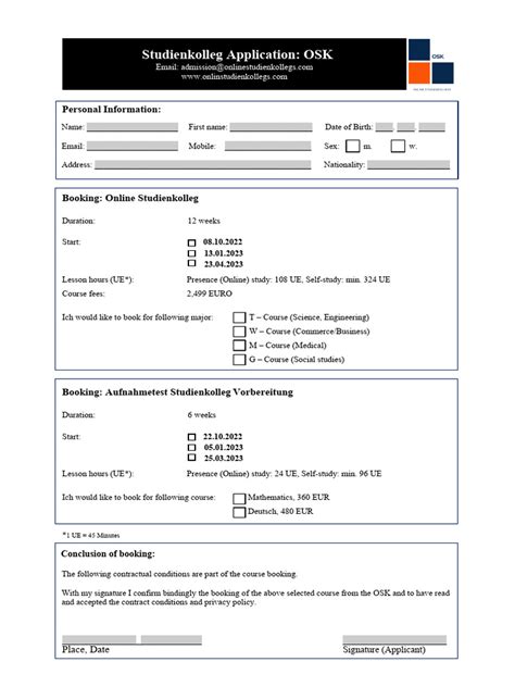 • Application Form: This is usually available on the Studienkolleg website, which you will need to fill out.