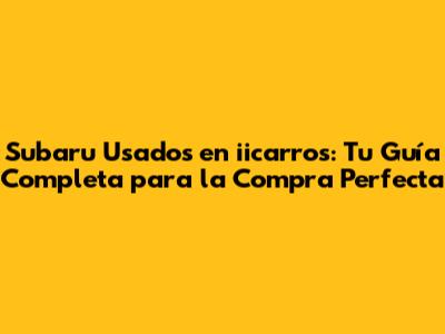 Encontrar un Subaru usado en iicarros es una excelente manera de disfrutar de la confiabilidad, seguridad y capacidad de un Subaru a un precio asequible. Sigue los consejos de esta guía, investiga a fondo, inspecciona el vehículo y negocia el precio de manera inteligente. Con un poco de paciencia y diligencia, encontrarás el Subaru perfecto que se adapte a tus necesidades y te brindará años de satisfacción en la carretera. ¡Buena suerte en tu búsqueda y que disfrutes de la experiencia Subaru! ¡A rodar se ha dicho! ¡No esperes más y comienza tu búsqueda de Subaru usado en iicarros hoy mismo! Recuerda que la investigación es la clave para una compra exitosa y segura. ¡Feliz conducción! ¡Disfruta de la seguridad y el rendimiento de un Subaru usado!