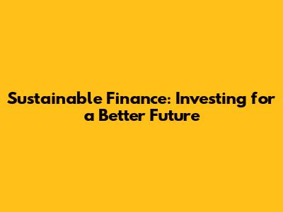 Sustainable Finance: Investing For A Better Future