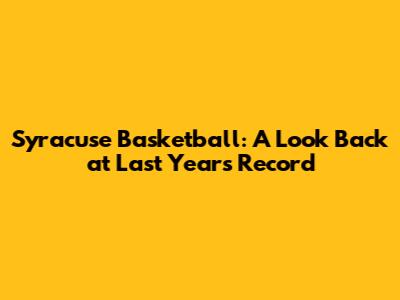 Syracuse Basketball Record Last Year: Season Review