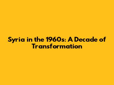 Syria In The 1960s: A Decade Of Change