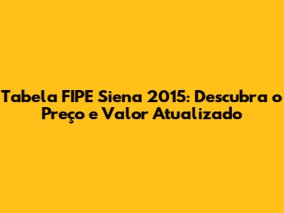 Pronto! Você terá acesso ao preço médio do Siena 2015 na Tabela FIPE. Lembre-se de que esse valor é apenas uma referência e pode variar dependendo das condições do veículo e da região onde você está.