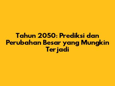 Tahun 2050 terdengar seperti sesuatu dari film fiksi ilmiah, bukan? Tapi guys, itu sebenarnya tidak terlalu jauh! Mari kita coba telaah dan prediksi apa yang mungkin terjadi di planet kita pada tahun 2050. Dari kemajuan teknologi hingga perubahan iklim, kita akan membahas berbagai aspek yang bisa membentuk masa depan kita. Siap untuk perjalanan ke masa depan? Yuk, kita mulai!