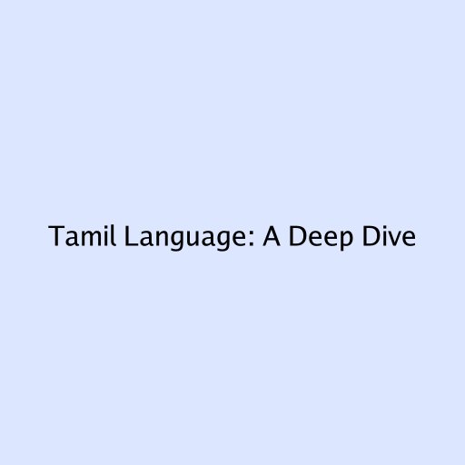 Tamil Language: A Deep Dive