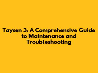 Taysen 3: A Comprehensive Guide To Maintenance And Troubleshooting