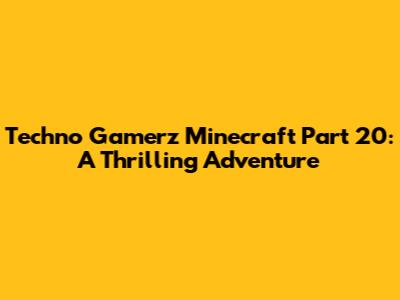 Techno Gamerz Minecraft: Part 20 Adventure Unveiled!
