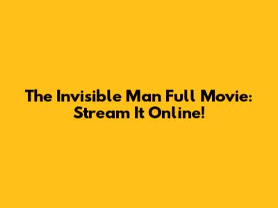 The Invisible Man Full Movie: Watch Online Now