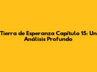 Tierra De Esperanza Capítulo 15: Un Análisis Profundo