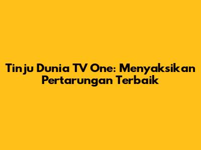 Tinju dunia TV One, siapa yang tidak mengenalnya? Bagi para penggemar olahraga tinju di Indonesia, nama ini sudah tidak asing lagi. TV One telah menjadi rumah bagi berbagai pertandingan tinju dunia yang seru dan menegangkan. Artikel ini akan membahas secara mendalam mengenai tinju dunia TV One, mulai dari jadwal tayang, berita terbaru, hingga sorotan menarik dari dunia tinju.