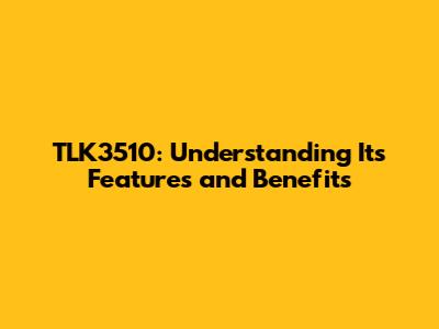TLK3510: Understanding Its Features And Benefits