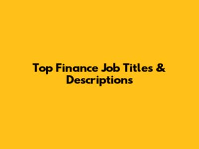 Top Finance Job Titles & Descriptions