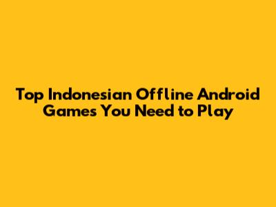 Top Indonesian Offline Android Games You Need To Play