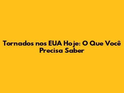Tornados Nos EUA Hoje: O Que Você Precisa Saber